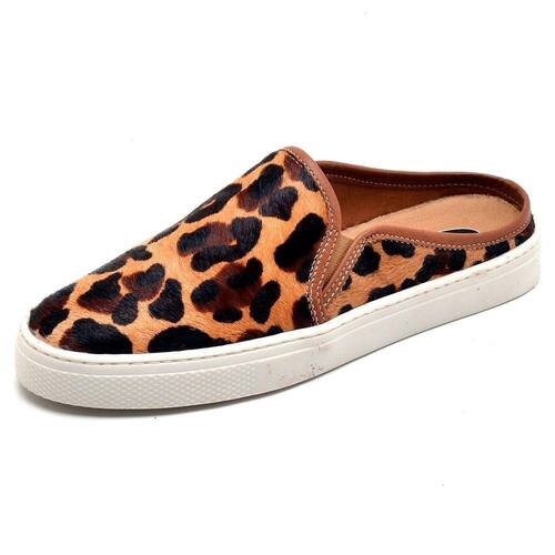 Mule Marrom Animal Print Feminino Couro Calce Facil Solado Borracha Tecido Antitranspirante - 40 - Marrom