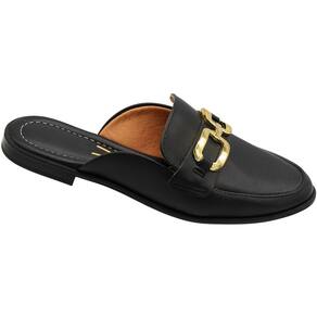 O Mule Vizzano Adorno Sofisticado Metalizado Feminino é o calçado ideal para mulheres que valorizam elegância e praticidade no dia a dia. Seu design clássico em preto com acabamento sofisticado destaca-se pelo adorno metalizado dourado, entregando um toque moderno e refinado que combina com looks profissionais e casuais. O formato aberto no calcanhar proporciona conforto e facilidade ao calçar, perfeito para rotinas dinâmicas. O solado emborrachado oferece segurança e aderência, enquanto a palmilha acolchoada garante suavidade a cada passo, escolha certa para quem busca versatilidade e sofisticação em todos os momentos.
