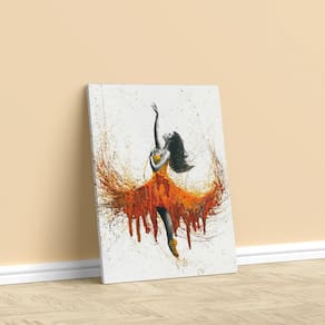 Mulher Vestido Laranja Arte Abstrato Quadro Canvas 120X80Cm