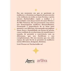 Em um momento em que se queimam as mulheres e o feminino na fogueira do preconceito e da violência em todas as suas formas, o poeta Lázaro Zachariadhes expõe a mulher e a diversidade como força motriz do amor Divino e da Mãe Natureza. Ele nos presenteia com textos que homenageiam mulheres dissemelhantes, mostrando a importância de se lutar para garantir o ser diferente, derramando nas páginas amor, força e feminilidade em forma de poesia, como condição de revolucionar, de transformar o mundo, de permitir a convivência com as diferenças, que nos fortificam e nos complementam. Ele nos mostra que em cada espaço de ação há de se permitir às mulheres serem diferentes, desiguais, distintas. Leia! Poeme-se! Zachariadhe-se!