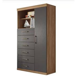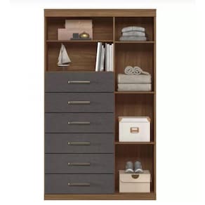 Especificações: 01 porta com 03 prateleiras 06 amplas gavetas com corrediças metálicas 01 ampla prateleira externa Puxadores em ABS