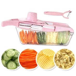 PACOTE INCLUI: 1X Base de corte 1X Protetor de mão 1X Caixa armazenadora 1X Descascador 5X Lâminas de corte Que tal economizar algumas horas do dia para você? Fatie verduras e legumes até 25X mais rápido e sem deixar sua cozinha bagunçada Este fabuloso fatiador de vegetais feito de aço inoxidável de grau alimentício e plástico ABS, oferece todas as funcionalidades de vários aparelhos com lâminas bastante afiadas, capazes de cortar quaisquer tipos de vegetais, ralar queijo, cortar batata, entre outros. Marca: COOKING UTENSIL SETS