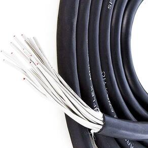Multicabos 16 Vias com termoplástico resistente a altas temperaturas e baixa retração durante a solda. Produto oferece espaguete termoplástico flexível, bitola de 24 AWG (17,20mm) e condutor em cobre estanhado. Cobertura em PVC emborrachado de alta resistência mecânica, gravado metro a metro, para aumentar a segurança em locais com grande circulação.
