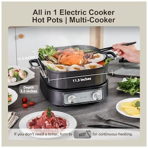 O MultiCooker Elétrico Autucu é um verdadeiro coringa na cozinha, podendo ser utilizado como panela elétrica, panela de sopa, frigideira elétrica, panela de cozimento lento e muito mais. Sua panela com revestimento cerâmico livre de PFOA, tanto interna quanto externamente, garante excelente liberação de alimentos e facilidade na limpeza. Com três níveis de potência (400W, 1200W e 1600W) e controle de temperatura e tempo, você pode aquecer, refogar e cozinhar a vapor com facilidade. Além disso, possui um design elegante e prático, com alças antitérmicas, tampa de vidro temperado, prevenção de vazamentos e oito clipes antiderrapantes no fundo. Cozinhe diretamente na panela, sem transferir para o fogão, evitando bagunças. O MultiCooker Autucu é um presente prático e elegante para amigos e adolescentes.