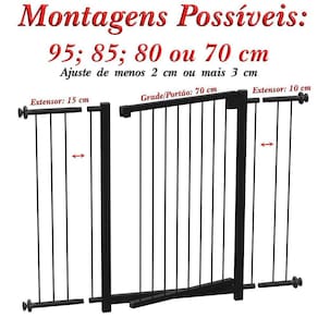 A MULTIFORMA, fabricante desse produto, produz grades portões para vãos de 70 cm até 1,5 m, que podem ser fixadas sem a necessidade de ferramentas ou furos. Além da cor preta, essa grade portão está disponível nas cores Branco, Prata, Azul, Rosa e Cobre lançamento , permitindo que você escolha a opção que mais combina com a decoração da sua casa.