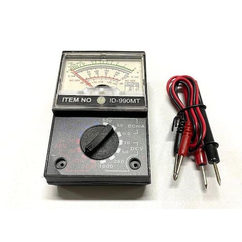 Multímetro analógico ID - 990 MT Idea; Sensibilidade: 20000 HMS / DC / AC; Tensão DC : 0 - 10/ 50 / 250 / 1000 V Tensão AC : 0- 10 / 50 / 250 / 1000 V Corrente DC : 0 - o.5 / 50 / 500 MA; Resistência : 0 - 10 K / 1 MOHM 5 KOHMMD Decibéis - 20 -+ 22 dB