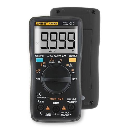 Descricao do produto Multimetro digital an8009 auto-range true-rms ac/d,c ncv, ohmimetro, capacimetro, amperimetro, voltimetro, frequencimetro e termometro.