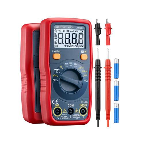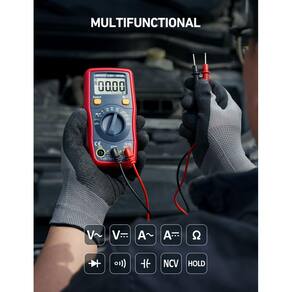 O multímetro AstroAI True RMS foi projetado para ser utilizado com segurança e precisão por profissionais em um ambiente comercial ou DIY de fim de semana que precisam de um pouco mais de utilidade de energia de seu multímetro digital padrão. É fácil e seguro de operar com recursos avançados construídos para medir aparentemente tudo. Execute testes em diodos e transistores enquanto é capaz de medir tensão, corrente, resistência, continuidade, capacitância e frequência, tudo em um dispositivo. Este multímetro é projetado para ser utilizado em ambientes comerciais, mas também pode ser levado para casa para uso com problemas elétricos automotivos ou domésticos. - Configurações versáteis – o multímetro digital AstroAI mede com precisão tensão CA/CC, corrente CA/CC, resistência, continuidade, capacitância e testa diodos e baterias (configurações de bateria de 1,5, 9, 12 V) - Segurança sem contato - Este DMM foi projetado com a segurança em mente. A função NCV minimiza a exposição a fios ativos; a sonda funciona para tomadas, tomadas, terminais e muito mais - Características práticas – Ao usar um multímetro, os pequenos detalhes como retenção de dados, uma tela LCD grande com luz de fundo, suporte e indicador de bateria fraca ajudam a fazer o trabalho melhor e mais rápido - Solução de problemas facilitada - Se o trabalho é uma verificação rápida de continuidade DIY ou um problema complexo, o design durável e as leituras consistentes combinam bem para longos dias no campo ou consertos na garagem - Segurança em primeiro lugar - dois fusíveis integrados classificados em F500mA/600V e F10A/600V; Anti-queima com fusível duplo de cerâmica e circuito de proteção de termistor; os fusíveis podem proteger o multímetro de forma eficaz; Proteção contra sobrecarga em todas as faixas.