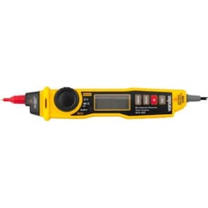 1 Multímetro digital tipo caneta. Acompanha: 1 estojo. Indicado para realizar medidas de tensão AC e DC, resistência, continuidade, teste de diodo e detecção de tensão sem contato NCV . Ideal para profissionais e técnicos que necessitam fazer medições em painéis elétricos, linhas de alimentação, sistemas de iluminação, equipamentos e sistemas elétricos e eletrônicos.Possui faixa automática e lanterna de LED. Fácil de transportar e para uso simplificado com apenas uma mão, seu formato tipo caneta permite visualização rápida das medições realizadas, ideal para locais de difícil acesso. Instrumento de CAT III 600 V. Categoria do multímetro:CAT III 600V Números de dígitos /Contagem do multímetro:3 1/2 dígitos - 0 a 1999 Capacidade de tensão AC do multímetro:600 V Capacidade de tensão DC do multímetro:600 V Resolução de tensão AC do multímetro:0,1 mV, 0,001 V / 0,01 V / 0,1 V / 1 V Resolução de tensão DC do multímetro:0,1 mV / 0,001 V / 0,01 V / 0,1 V / 1 V Precisão de tensão AC do multímetro:200 mV / 2 V / 20 V / 200 V: ± 0,8% +3 / 600 V: ± 1% +5 Precisão de tensão DC do multímetro:2 V / 20 V / 200 V: ± 0,8% +3 / 600 V: ± 1% + Faixa de tensão AC do multímetro:200 mV / 2 V / 20 V / 200 V / 600 V Faixas de tensão DC do multímetro:200 mV /2 mV /2 V / 20 V / 200 V / 600 V Capacidade de corrente AC do multímetro:200 mA Capacidade de corrente DC do multímetro:200 mA Precisão de corrente AC do multímetro:± 2% +5 Precisão de corrente DC do multímetro:± 1,8% +5 Resolução de corrente AC do multímetro:0,01 mA / 0,1 mA Resolução de corrente DC do multímetro:0,01 mA / 0,1 mA Faixas de corrente AC do multímetro:20 mA / 200 mA Faixas de corrente DC do multímetro:20 mA / 200 mA Capacidade de resistência do multímetro:20 M Resolução resistência do multímetro:0,1 / 0,001 k /0,01 k / 0,1 k/ 0,001 M / 0,01 M Precisão resistência do multímetro:200 / 2 K / 20 K / 200 k / 2 M: ± 1% +3 / 20 M: ± 1,2% +15 Faixas de resistência do multímetro:200 / 2 K / 20 K / 200 k / 2 M / 20 M Faixas de medição de temperatura do multímetro:N/A Resolução de temperatura do multímetro:N/A Precisão de temperatura do multímetro:N/A Capacidade de medição de capacitância do multímetro:N/A Faixas de medição de capacitância do multímetro:N/A Resolução da capacitância do multímetro:N/A Precisão da capacitância do multímetro:N/A Teste de diodo do multímetro:Possui - 2,7 V tensão reversa Teste de continuidade do multímetro:Possui - 2,7 V circuito aberto Sinal sonoro de continuidade do multímetro:Possui - 50 Função tecla HOLD do multímetro:Possui Capacidade de medição de frequência do multímetro:N/A Resolução de frequência do multímetro:N/A Faixa de frequência do multímetro:N/A Faixa de Temperatura de operação do multímetro:0°C a 40°C Capacidade de medição de luminosidade lux do multímetro:N/A Resolução de luminosidade lux do multímetro:N/A Precisão de luminosidade lux do multímetro:N/A Faixas de medição de luminosidade lux do multímetro:N/A Indicador de bateria fraca do multímetro:Possui Alimentação:2 pilhas AAA - alcalinas Comprimento do multímetro:240 mm Largura do multímetro:42 mm Espessura do multímetro:33 mm Massa aproximada Kg :116 g CDC : legal: 90 dias + contratual: 3 meses