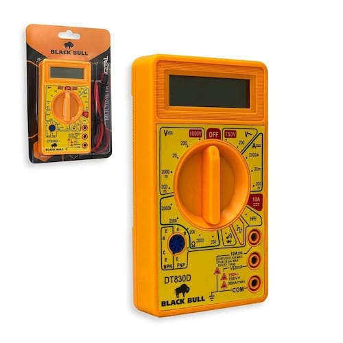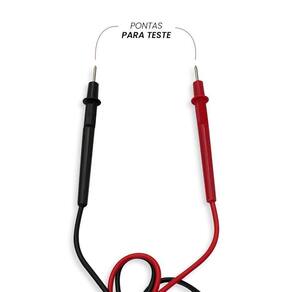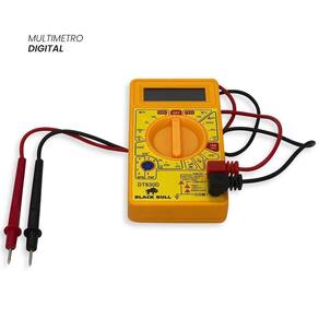 Multimetro Digital com 1 Par de Ponta de Teste. Com o Multímetro Digital, você pode garantir precisão e facilidade na hora de medir circuitos eletrônicos, testar baterias e verificar a voltagem de aparelhos eletrodomésticos. Com display de fácil leitura, é possível medir corrente elétrica, voltagem e resistência de forma rápida e segura.Feito de materiais de qualidade, vai garantir segurança e leveza para transportá-lo para qualquer lugar que você vá. ESPECIFICAÇÕES TÉCNICAS: - Display: 3 Dígitos (2000 Contagens).- Indicação de Sobre-faixa: Mostra apenas o dígito mais significativo (1).- Temperatura de Operação: 0C a 50C, RH< 70%.- Temperatura de Armazenamento: -20C a 60C, RH< 80%.- Uso Interno.- Alimentação: 1 x 9V (Inclusa)- Dimensões: 126(A) x 70(L) x 24(P)mm.- Peso: Aproximadamente 150g. Tensão DC:- Faixas: 200mV, 2000mV, 20V, 200V, 1000V- Resolução: 100V, 1mV, 10mV, 100mV, 1V- Precisão garantida: 200mV (0.25% 2D); 2000mV ~ 1000V (0.5% 2D)- Impedância de Entrada: 1MW- Proteção de Sobrecarga: 220V AC RMS para faixa 200mV; 1000V DC / 750V AC RMS para outras faixas. Tensão AC:- Faixas: 200V, 750V- Resolução: 100mV, 1V- Precisão: 200V ~ 750V (1.2% 10D)- Impedância de Entrada: 1MW- Resposta em Frequência: 45Hz a 450Hz- Proteção de Sobrecarga: 1000V DC / 750V AC RMS Corrente DC:- Faixas: 200A, 2000A, 20mA, 200mA, 10A- Resolução: 0.1A, 1A, 10A, 100A, 10mA- Precisão: 200A ~ 20mA (1% 2D); 200mA (1.2% 2D); 10A (2.0% 4D).- Proteção de Sobrecarga: Fusível de ação rápida 0.2A/250V para entrada mA; sem Fusível para Entrada 10A (10A máximo por 15 segundos). Resistência:- Faixas: 200W, 2000W, 20kW, 200kW, 2000kW- Resolução: 0.1W, 1W, 10W, 100W, 1kW- Precisão: 200W ~ 200kW (0.8% 2D); 2000kW (1.0% 2D)- Tensão de Circuito Aberto: 2.8V DC (máximo)- Proteção de Sobrecarga: 220V RMS (máximo 10s) Diodo:- Faixa: Diodo- Indicação: Queda de tensão aproximada sobre o diodo- Condição de teste: Corrente direta aproximada de 1mA DC- Tensão reversa aproximada de 2.8V DC- Proteção de sobrecarga: 220V RMS (máximo 10 segundos) Teste de hFE de transistor:- Faixa: 0 ~ 1000- Ib: 10A- Vce: 2.8V DC ESPECIFICAÇÕES: Material: Plástico e Aço Dimensões: -Multímetro: Comprimento: 13cm x Larg.: 7 cm -Ponta de teste: Comprimento: 70cm Peso: Aprox. 105g CONTÉM: 01 MULTÍMETRO DIGITAL COM 01 PAR DE PONTA DE TESTE
