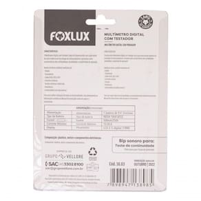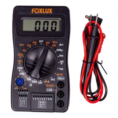 O Multímetro Digital com Testador Foxlux é uma ferramenta versátil e precisa, ideal para medir correntes, tensão, resistência, continuidade e testar transistores. Este equipamento vem acompanhado de ponta de prova, bateria e possui um fusível interno na entrada do circuito, garantindo proteção e maior durabilidade do produto.