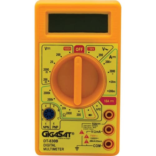 Realiza medidas de tensão DC e AC, corrente DC, resistência e testes de diodo e transistor hFE