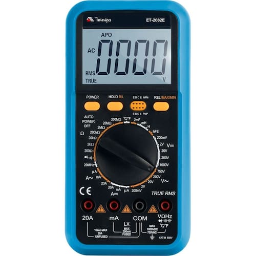 O Multímetro Digital ET-2082E é um instrumento ideal para eletricistas, técnicos e estudantes que necessitam de um instrumento confiável para medições elétricas e eletrônicas. Possui tecnologia True-RMS, que garante leituras mais exatas em sinais senoidais e não senoidais. Além disso, conta com as funções REL/MAX*MIN e indutância.