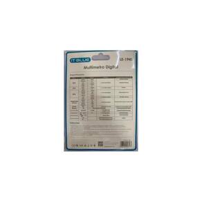 Multímetro Digital Portátil Profissional IT-BLUE LE-1945O multímetro digital é um equipamento delicado e requer o manuseio de um operador habilitado tecnicamente, caso contrário, poderá ser danificado. Portanto não serão considerados, mesmo dentro do prazo de validade da garantia, os defeitos causados pelo mau uso.Especificações- Uso Interno.- Alimentação: 1 x 9V (Inclusa)- Dimensões: 126(A) x 70(L) x 24(P)mm.- Peso: Aproximadamente 150g.Dados Técnicos- Dimensões: 126(A) x 70(L) x 24(P)mm.- Peso: Aproximadamente 150g.Itens incluso:1 Multímetro Digital1 Par Ponta de teste