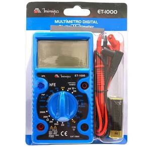 Multimetro digital minipa - diferencia-se por ser pequeno, portátil e possuir display de 3 1/2 dígitos. - o instrumento pode ser em medidas de tensão dc / ac, corrente dc, resistência, testes de diodo, continuidade, hfe detransistor e também possui a função de gerador de onda quadrada. - a precisão é especificada como % leitura + número de dígitos para temperatura 23c 5c e umidade relativa 75%. A especificação é valida para 5% a 100% da faixa de medida. Especificações: - display: 3 1 / 2 dígitos, 2000 contagens; - taxa de atualização: aproximadamente 2 vezes por segundo; - indicação de sobrefaixa: 1; - indicação de polaridade: automática; - indicação de bateria fraca: - mudança de faixa manual; - teste de continuidade, diodo, hfe de transistor; - gerador de onda quadrada; - altitude de operação: abaixo de 2000m; - ambiente de operação: 0c40c 32f a 104f , rh - tensão dc: 200m/2000m/20/200/600v - tensão ac: 200/600v - resistência: 200/2000/20k/200k/2000ko - corrente dc: 200/2000/20m/200m/10a Itens que acompanham: - 1. Manual de instruções; - 2. Pontas de prova 1 par . -1 bateria Marca: Não Informado Ean: 7804575470823