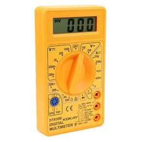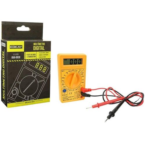 O Multímetro Digital modelo SC-830B da Kokay, possui medidas de Tensão DC/AC, Corrente DC, Resistência, testes de Diodo e Continuidade.