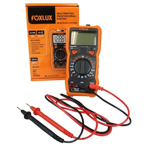 Ficha Técnica: – Tipo de instrumento: Multímetro digital – Categoria: Profissional – Tipo de medição: Tensão, corrente e resistência – Alimentação: Bateria 9V – Display: Digital com leitura de múltiplas escalas – Faixa de medição: Variável conforme seleção manual – Tipo de ponta de prova: Com isolação e encaixe padrão – Aplicação: Testes e medições em circuitos elétricos e eletrônicos