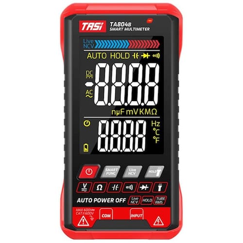 Multímetro Digital Ta804 Digítal Automático Medição Wireless O Multímetro Digital Ta804 Digítal Automático Medição Wireless é uma ferramenta indispensável para a instalação de circuitos domésticos, reparação eletrônica, manutenção de instalações elétricas, reparação de automóveis e eletrodomésticos. Com função de leitura em tela grande e proteção contra sobrecarga, este multímetro é estável, preciso e confiável. Características: - Capaz de testar o circuito liga/desliga de frequência, de resistência, de tensão dc/ac e oferece detecção de NCV - identificação de fio neutro e fio fase. - Equipado com uma tela grande de 3,5 polegadas que mostra quatro casas decimais, garantindo leituras claras e fáceis. - Ultra fino, com o tamanho de um telefone celular, o que o torna extremamente fácil de transportar. - Possui lanterna embutida, tornando possível a utilização à noite ou em locais escuros. Especificações: - Modelo: Ta804a - Modo de medição: totalmente automático - Tensão cc: 0.9V a 600V precisão de 0.8% + 5 - Tensão ca: 0.9V a 600V precisão de 1.0% + 3 - Resistência: 10O a 60MO precisão de 1.5% + 2 - Frequência: 40Hz a 5999Hz - Tela de exibição: tela comum de 3,5 polegadas - Bip on-off: 50 voz - Detecção de tensão NCV: sim - Identificação de fio neutro e fio fase: sim - Medição de temperatura ambiente: 0ºC a 40ºC - Lanterna: sim - Detecção de dados: sim - Aviso de baixa tensão: sim - Prompt de alcance excessivo: OL - Indicador de polaridade positivo e negativo: sim - Faixa analógica: segmento 21 - Taxa de amostragem: cerca de 3 vezes por segundo - Contagem de exibição: 5999 contagens - Desligamento automático: 10 minutos - Fonte de alimentação: pilha AAA - Tamanho do item: 148x76x19mm - Peso do item: 167g : Todas as dúvidas podem ser auxiliadas pós-venda. Temos técnico disponível para auxiliar e ajudar com dúvidas técnicas ou de instalações. Adquira agora o Multímetro Digital Ta804 Digítal Automático Medição Wireless e tenha em mãos uma ferramenta confiável e de alta qualidade para todas as suas necessidades de medição e teste. Marca: Não Informado