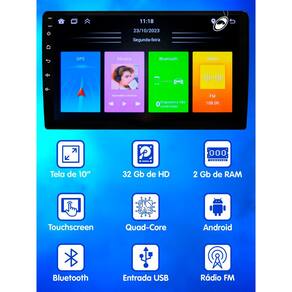 CARACTERÍSTICAS TÉCNICAS: - Sistema Android: Seus aplicativos favoritos direto na tela da sua multimídia; - Tela de 10 polegadas Full Touch: A tela grande e sensível ao toque proporciona uma navegação intuitiva e fácil; - Armazenamento: Com 32 GB de armazenamento interno, você tem espaço suficiente para armazenar aplicativos e outros dados essenciais, sem se preocupar com a falta de espaço.