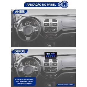 ESPECIFICAÇÕES TÉCNICAS: - Permite a instalação de centrais multimídia de 9" ou 10"; - A moldura é encaixada diretamente na parte superior central do painel, posicionada acima das saídas de ar condicionado; - Necessário cortar a parte interna do painel para passagem do chicote de ligação; - Compatível com botão do pisca alerta OVAL; - Acabamento impecável na cor PRETO (preto fosco); - Encaixe perfeito e de fácil instalação/utilização; - Design moderno e elegante; - Longa durabilidade; - Excelente acabamento.