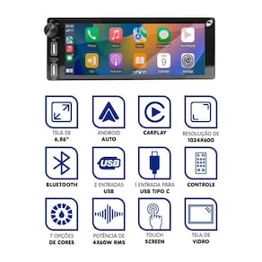 Descrição: O ht-2693ca é uma central multimídia mp5 desenvolvida para oferecer uma experiência de som e conectividade avançada com praticidade no seu veículo. Com tela de vidro de 6,86'' sensível ao toque ips full touch e resolução de 1024 600, combina interatividade moderna com visual elegante. Ideal para quem busca uma interface tátil eficiente, design sofisticado e recursos completos para o dia a dia. Características: - tela interativa de alta qualidade: vidro de 6,86'' com painel ips full touch e resolução 1024 600; - potência sonora eficiente: 4 canais de 60 w rms, garantindo áudio nítido e equilibrado; - iluminação personalizável: botões laterais em 7 cores; - conectividade versátil: bluetooth para chamadas e músicas, 2 entradas usb música e carregamento e uma entrada usb tipo c, espelhamento com carplay e android auto sem cabo; - recursos multimídia: entrada de vídeo, entrada para câmera de ré, 2 saídas av; - controle intuitivo: compatível com comandos no volante swc , com memória para até 10 funções; - praticidade: controle remoto incluso para operação à distância. Especificações técnicas: - modelo: ht-2693ca; - tela: vidro de 6,86'' ips full touch resolução 1024 600; - dimensões: consulte as imagens do anúncio; - potência de saída: 460 w rms; - conectividade: bluetooth 2 usb / 1 usb tipo c carplay sem fio android auto sem fio entrada de vídeo entrada para câmera de ré 2 saídas av; - controle remoto: incluso; - suporte a comandos no volante swc : até 10 funções configuráveis. : - 1 ano de do fabricante. - a não cobre erros de instalação ou mau uso. Conteúdo da embalagem: - 1 multimídia h-tech ht-2693ca; - 1 controle remoto; - 1 par de chicotes de ligação; - 1 câmera de ré. No grupo carrosomshop pepe parts, entendemos a paixão que os motoristas têm pelos seus veículos. É por isso que nos dedicamos a fornecer os melhores acessórios e peças para melhorar seu carro e tornar cada viagem ainda mais emocionante. Explore nossa loja e descubra uma variedade de produtos automotivos que vão desde multimídias, molduras de painel, alto falante, etc até peças de reposição essenciais. Descubra o que você precisa para elevar seu veículo a um novo patamar Junte-se a nós e experimente o compromisso do grupo carrosomshop pepe parts com a qualidade e a satisfação do cliente. Estamos ansiosos para atender às suas necessidades automotivas com produtos especializados e atendimento excepcional. Garanta a sua multimídia agora e dirija com segurança e conforto. Homologação Anatel: 112572013224 Marca: Não Informado Ean: 7893595569303