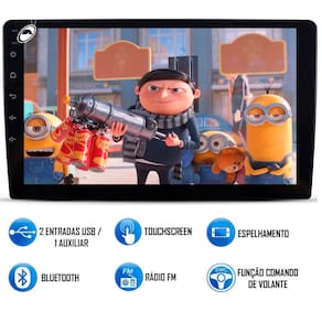 PRINCIPAIS CARACTERÍSTICAS: - Tela 9" Polegadas Full Touch - Tela de Vidro 2.5D - Espelhamento de celular Android e IOS - Função Android Auto e CarPlay conectividade com e sem fio - Bluetooth 4.1 - Radio FM - Resolução da imagem 1024x600 - Equalizador JAZZ/POP/CLASSIC/ROCK - Potência 4x60 RHMS - 2 Entradas USB - 1 Entrada para câmera de ré - 1 Entrada de áudio e vídeo - 1 Saída de áudio e vídeo - 1 Entrada para microfone externo - 1 Saída de Subwoofer - 2 Fios SWC para comando de volante (Grava até 10 Funções) - Saída de Vídeo (quando a saída de vídeo para o encosto de cabeça, apenas o encosto de cabeça tem exibição de vídeo).