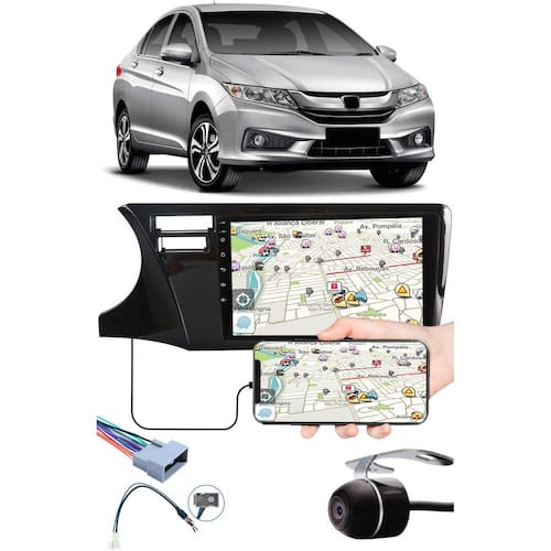 KIT COMBO MULTIMÍDIA 9" POLEGADAS + MOLDURA 2 DIN + CÂMERA DE RÉ PARA CITY 2015 EM DIANTE ----- PRONTO PARA INSTALAÇÃO -----