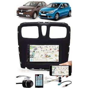 Super Lançamento! KIT COMBO MULTIMÍDIA + MOLDURA 2 DIN + CHICOTE LIGAÇÃO + CHICOTE ADAPTADOR DE ANTENA + CÂMERA DE RÉ PARA RENAULT SANDERO E LOGAN 2015 À 2020 ----- PRONTO PARA INSTALAÇÃO -----