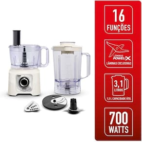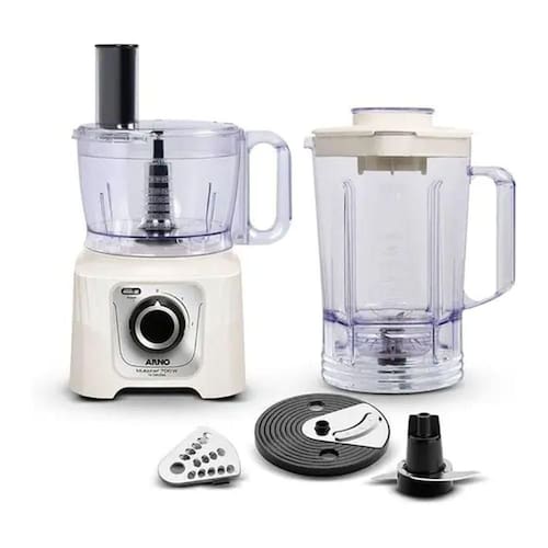 Multichef 16 funções conta com 700W de potência, 2 velocidades e 4 acessórios, permitindo picar, ralar, fatiar e liquidificar - Receitas mais práticas e rápidas com seu multiprocessador multichef Arno. Com suas 16 funções, você terá muita praticidade e versatilidade para suas receitas, podendo bater massas pesadas e leves, ralar legumes duros e macios, picar legumes e carnes, liquidificar alimentos e muito mais. Crie suas receitas usando apenas o Multichef 16 funções.
