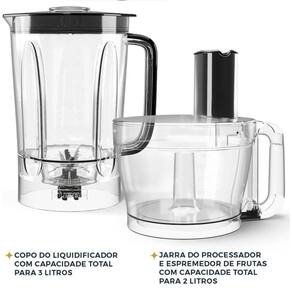 Multiprocessador Britânia 5 em 1 BMP2000 1300W 127V Potência, Versatilidade e Praticidade na Sua Cozinha!Transforme o preparo das suas receitas em um momento rápido, prático e delicioso com o Multiprocessador Britânia BMP2000!Com 1300W de potência, ele é o aliado ideal para quem busca desempenho e multifuncionalidade em um só produto.O 5 em 1 da Britânia combina as funções de processador, liquidificador, fatiador, ralador e espremedor de frutas, oferecendo tudo o que você precisa para preparar refeições completas com muito mais agilidade.Com design moderno e acabamento elegante, o BMP2000 traz eficiência e estilo para a sua cozinha! Funções e Benefícios: 5 em 1: processa, mistura, tritura, fatia, rala e espreme frutas com facilidade. Potência de 1300W: garante alta performance até nos alimentos mais duros. Copo do liquidificador com 3L (capacidade total): ideal para sucos, vitaminas e massas leves. Lâminas em aço inox: mais durabilidade e precisão no corte. Espremedor de frutas integrado: prepare sucos frescos e naturais em segundos. Função Pulsar e 2 velocidades: controle total da textura dos alimentos. Fácil de desmontar e limpar: praticidade no dia a dia. Sistema de trava de segurança: o aparelho só liga quando está corretamente montado.Vantagens que Você Vai Amar:Substitui vários eletrodomésticos, economizando espaço e tempo.Ideal para picar legumes, preparar massas, molhos, sucos e muito mais.Perfeito para famílias que buscam praticidade e eficiência.Design moderno que combina com qualquer estilo de cozinha. Especificações Técnicas: Marca: BritâniaModelo: BMP2000Cor: PretoPotência: 1300WTensão: 127VCapacidade total do copo: 3 litrosCapacidade útil: 2 litrosVelocidades: 2 + PulsarLâminas: Aço inoxFunções: Processador, liquidificador, ralador, fatiador e espremedor Conteúdo da Embalagem:1 Multiprocessador Britânia BMP20001 Copo de Liquidificador1 Conjunto de Lâminas e Acessórios1 Espremedor de Frutas1 Manual de Instruções