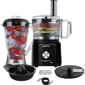 Sua cozinha completa. Ideal para fatiar, misturar, ralar, picar, cortar, este multiprocessador ainda é um liquidificador e espremedor de frutas, facilitando para fazer sucos, molhos, vitaminas, complementando suas refeições diárias. Com design arrojado, ele apresenta 2 níveis de velocidades e função pulsar, oferecendo potência máxima para quebrar ingredientes mais sólidos, deixando a mistura mais homogênea. A jarra do processador tem capacidade para 1,2l, enquanto a do liquidificador é de 2,2 litros. Desmontável, você pode guardar seus acessórios dentro da jarra, organizando melhor o aparelho dentro do armário.