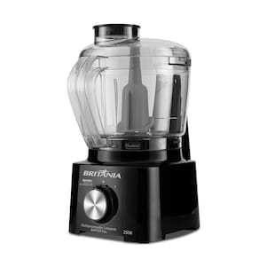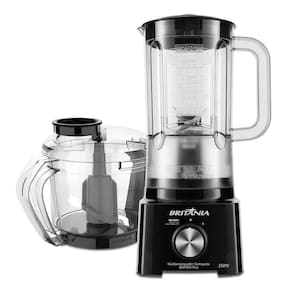 Multiprocessador Compacto Britânia BMP950 Plus 2 em 1 Preto cor: preto voltagem: 110v Multiprocessador Compacto Britânia BMP950 Plus 2 em 1 Movimento Revert Preto O Multiprocessador Compacto Britânia BMP950 Plus é 2 em 1, liquidificador e processador. Ele processa, corta, mistura, pica, moe e liquidifica. Possui Função Revert, a rotação é nos dois sentidos e somado a tecnologia Maxx 6, suas seis lâminas de altíssimo poder de trituração, os alimentos são processados com a maior performance. O Design moderno é mais uma das muitas qualidades que o BMP900 apresenta, compacto e funcional, é tudo que sua cozinha precisa! Características Gerais: - Potência: 250W;- 1 Velocidade;- Função Pulsar;- Função autolimpeza;- 2 em 1: Liquidificador e processador;- Duplo sentido de rotação: Função Revert;- Jarra do Processador com capacidade de 500ml;- Copo do liquidificador com capacidade de 850ml;- Funções: processar, cortar, misturar, picar, moer e liquidificar;- Design moderno e inovador na cor preta;- Design vertical: ocupa menos espaço na cozinha;- Todos os acessórios podem ser lavados na lava-louças;- Copo para liquidificador com alça lateral;- Pés de borracha antideslizantes;- Possui trava de segurança para ambos copos;- Faca cimitarra ou tipo hélice;- Fácil de manusear;- Fácil de limpar;- Porta-fio; Especificações Técnicas: - Altura: 31cm- Largura: 17cm- Profundidade: 21,5cm- Peso: 1,3Kg- Potência: 250W- Consumo: 0,25kW/h- Cor: Preto- Modelo: BMP950 Plus- Fabricante: Britânia Garantia do Fabricante: 1 ano Conteúdo da Embalagem: 01 UN Multiprocessador Compacto Britânia BMP950 Plus 2 em 1 Preto01 UN Manual e certificado de garantia Ean: 7899466434633