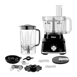 O que vem na caixa:1 Copo de liquidificadorn1 Jarra de multiprocessadorn1 Unidade motoran1 Espremedor de frutasn1 Adaptador de lâminasn1 Lâmina de fatiar n1 Lâmina de ralarn1 Lâmina para batata paliton2 Lâminas de processarn1 Batedorn1 Emulsificador