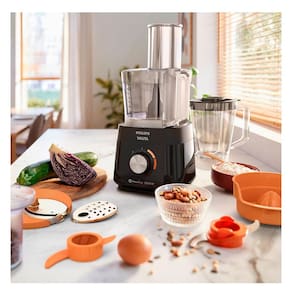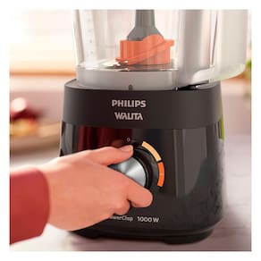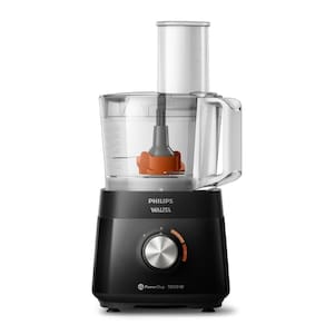 São 1000W com 2 velocidades, mais pulsar. Função siga as cores para selecionar a velocidade pela cor dos acessórios, de forma simples e intuitiva! Jarra do Multiprocessador de 1,5L, com tampa medidora. 6 acessórios: Jarra de liquidificador 2L*, Lâmina para ralar e fatiar, Moedor de grãos, Espremedor de frutas, Batedor de massas, e Faca processadora PowerChop, exclusiva tecnologia que combina 2 lâminas com ângulos de corte perfeito, muito mais fino e preciso. Assim é possível preparar diversas receitas. Totalmente livre de BPA. Cabo retrátil, compacto e fácil de armazenar. Experimente fazer sempre o seu melhor com Philips Walita!