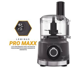 A jarra de 1,5 litro e o processador com mesma capacidade permitem preparar grandes quantidades de forma prática, ideal para famílias ou quem gosta de se organizar com antecedência. As lâminas em aço inox do Multiprocessador PMP10B são resistentes e oferecem cortes uniformes nas funções de fatiar, ralar, liquidificar e emulsificar.