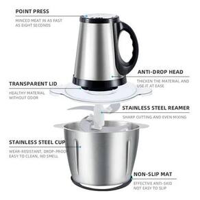 Multiprocessador triturador elétrico com lâmina afiada em aço inoxidável 304, capacidade de 3,8 litros, três velocidades ajustáveis e fácil limpeza. Ideal para carnes, vegetais, alho, gengibre, pimenta, amendoim e preparo de pastas.Desmontável
