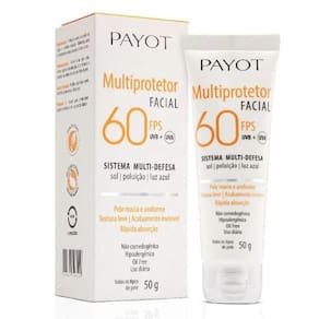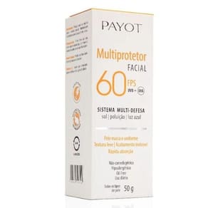 Multiprotetor Facial 60 FpsO Multiprotetor Facial 60 FPS Payot - um produto perfeito para a defesa contra as agressões diárias. Possui uma combinações de filtros e ativos de alta eficácia que hidrata e protege o rosto dos efeitos nocivos do sol , poluição e luz azul. Com ação antioxidante, previne o envelhecimento precoce. Ajuda na prevenção de marcas, rugas e linhas de expressão..Benefícios-tom de pele mais uniforme.-acabamento invisível.-não muda sua cor.-espalha facilmente.-textura leve.-não deixa a pele oleosa.-hidrata e protege o rosto.-previne o envelhecimento.-previne marcas, rugas e linhas de expressão..Modo de UsoDiariamente, pela manhã, aplicar sobre a pele limpa e seca, espalhando com movimentos circulares até completa absorção.Não aplicar ao redor dos olhos.Pode ser reaplicado ao longo do dia.Uso externo.