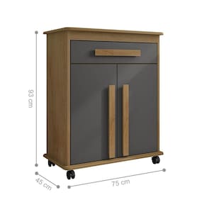As portas possuem dobradiças metálicas, conta com uma prateleira interna.