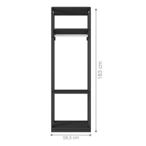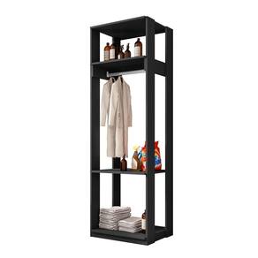 Produto com cabideiro de alumínio e prateleiras. Versátil e se adapta a vários ambientes.