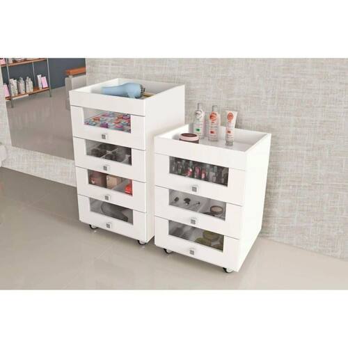 Multiuso Quarto 2 Peças (gaveteiro Pe2009 + Carrinho De Maquiagem Pe2013) Branco - Tecno Mobili