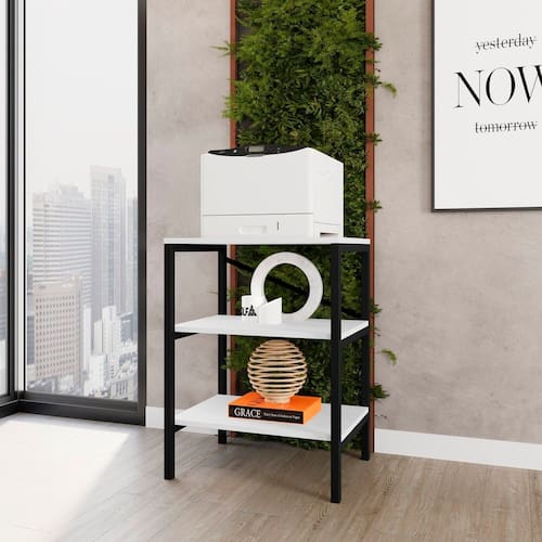 O Multiuso Slim é elaborado em aço, com pintura epóxi, e tampos em MDF/MDP com pintura UV. Produto com design inovador, moderno, prático, e que ocupa pouco espaço. Para deixa o ambiente com uma cara nova. Acabamento do Tampo: Pintura UV Acompanha Manual de Instalação: Sim Ambiente Principal: Escritório Complexidade da Montagem: Média: pode ser montado por mais de uma pessoa e/ou necessite de maior conhecimento para montagem Cor: Preto/Branco Cor da Base: Preto Cor do Produto: Preto/Branco Cor do Tampo: Branco Cor Interna: Preto Dobrável: Não Escala de Brilho: Semi-Brilho Espessura do Tampo: 12 mm Formato: Retangular Itens Inclusos: 1 Multiuso, Kit Ferragem e Manual de Montagem Linha ou Coleção: Slim Manual de Montagem e Instalação: https://product-hub-prd.madeiramadeira.com.br/865752/documents/6e812552-1bc6-406b-9da5-f5779edb39202377592531017272604519145.pdf Material da Estrutura: Aço Material do Tampo: MDF/MDP Material Principal: Aço Necessita Montagem: Sim Origem do Produto: Nacional Pés com Regulagem de Altura: Não Peso: 7,6 kg Peso Máximo por Prateleira: 20 kg Possui Painel: Não Possui Passa Cabos: Não Possui Porta Objetos: Sim Possui Portas: Não Possui Prateleiras: Sim Possui suporte para CPU: Não Possui Suporte para Teclado: Não Possui Vidro: Não Quantidade de Nichos: Não Quantidade de Prateleiras: 03 Prateleiras Recomendações de Uso, Manutenção e Limpeza: Pano levemente umedecido com água, seguido de pano seco, não utilizar produtos químicos ou abrasivos. Sapatas Niveladoras: Não Sistema de Montagem: Parafusos Suporta Até (kg): 20 kg