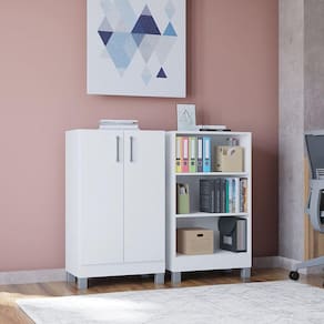 Seja como armario para objetos, estante para livros, organizador de documentos ou apoio para decoracao, ele se adapta perfeitamente a qualquer ambiente.