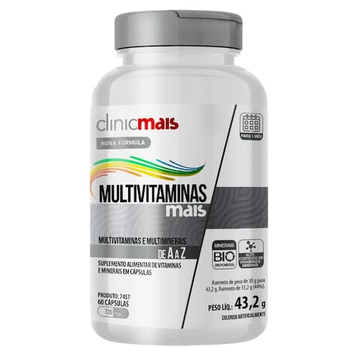 O Multivitaminas Mais contém um mix completo de nutrientes fundamentais para o corpo:
