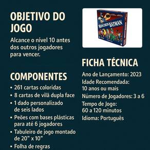 Mergulhe em partidas cheias de estratégia, humor e competição com este envolvente jogo de cartas com tabuleiro Ideal para jogar com amigos ou em família, ele oferece horas de diversão para 3 a 6 jogadores em disputas dinâmicas onde o objetivo é simples: subir de nível até alcançar o nível 10. Durante o jogo, os participantes enfrentam desafios, utilizam cartas especiais e interagem entre si - seja colaborando ou sabotando. Com 261 cartas ilustradas, tabuleiro temático, peões personalizados e dado exclusivo, cada partida se torna única e imprevisível. Este é o jogo ideal para quem busca diversão em grupo, com mecânicas estratégicas, reviravoltas inesperadas e muita interação social. Fácil de aprender, mas com muita profundidade , é perfeito para iniciantes e veteranos dos jogos de tabuleiro. Destaques do Produto Estimula o raciocínio lógico e a criatividade Ideal para adultos, adolescentes e toda a família Excelente opção de presente para quem ama jogos de tabuleiro Regras simples, partidas dinâmicas e muito envolvimento entre os jogadores Ficha Técnica Tipo de jogo: Jogo de cartas com tabuleiro Número de jogadores: 3 a 6 participantes Idade recomendada: A partir de 10 anos Tempo médio de jogo: 60 a 120 minutos Conteúdo da caixa: 261 cartas ilustradas 1 tabuleiro de jogo aprox. 50 x 25 cm 6 peões com base 1 dado personalizado Manual de instruções Idioma: Português Indicado para: Famílias, grupos de amigos, festas e encontros Homologação Inmetro: CE-BRI/IQB 005923 53374/19-038 Marca: Não Informado