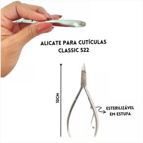 O Alicate ículas Classic 522 é confeccionado em aço carbono niquelado, um material que oferece alta resistência à corrosão e facilidade na esterilização. Seu cabo texturizado proporciona uma pegada firme, evitando deslizamentos durante o uso, o que é fundamental para a e eficácia na hora de cuidar das suas unhas.