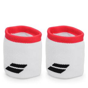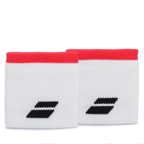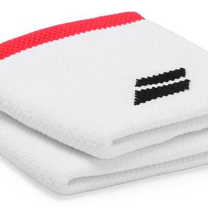 - Detalhamento: Pacote com 02 munhequeiras, formato anatômico ao pulso, atoalhada, logo Babolat bordado na parte frontal, munhequeira na cor Branca com uma faixa em vermelho;