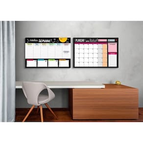 Lindos Quadros De Produtividade Calendário Mensal e Semanal com tecnologia embarcada 60x40cm de alta qualidade, construído artesanalmente e com muito capricho, ótimo para presentear alguém querido ou a si mesmo a .Com eles você poderá planejar suas tarefas, registrar seus compromissos, definir suas metas, objetivos e muito mais. Os quadros vem acompanhado por uma caneta hidrográfica apagável, 35 números magnéticos e 20 emoticons para torar seu quadro dinâmico e funcional.Além dos quadro serem bonitos e funcionais, também é acompanhado por um Card de metal TECNOLÓGICO, que trás a experiência em Realidade Aumentada RA , basta seguir as orientações que acompanham o seu quadro e descubra, cuidados, dicas e muito mais.Se organize de forma prática e divertida.O que acompanha- 1 Quadro planejador mensal 60x40x1,5cm de Metal- 1 Quadro planejador semanal 60x40x1,5cm de Metal- 55 Imãs variados- 2 Canetas com apagadorImportanteUsar APENAS canetinhas hidrográficas apagáveis, as mesmas que são usadas nas lousas brancas tradicionais.Limpeza do QuadroBasta usar o apagador da canetinha envida, apagador de lousas brancas ou simplesmente um pano, porém com o passar do tempo o quadro pode ficar sujo e manchado por conta da frequência de uso e intensidade das canetinhas, assim como ocorre normalmente em lousas brancas tradicionais. Nesse caso, pode ser necessário o uso de um pouco de álcool 70 e um paninho para limpar de forma mais efetiva as áreas de escrita.NUNCA usar Acetona, produtos corrosivos ou abrasivos.AtençãoO quadro possui pequenos elementos e acessórios magnéticos que complementam o produto. Por favor, ter cuidado redobrado com crianças e animais de estimação, pois podem acabar engolindo ditos acessórios por acidente ou descuido.