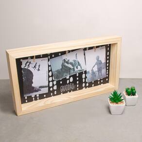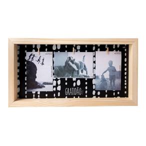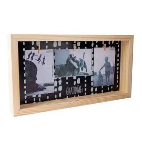 produzido em Pinus e HDF, possui três grapos para prender fotos Material: Pinus e HDF Contém: 1 Mural de fotos Dimensões: 46 x 24 x 5cm. cuidados: Limpar com pano seco. Não utilizar produtos químicos e abrasivos. Impactos e quedas podem danificar o produto. Ean: 7908131648982