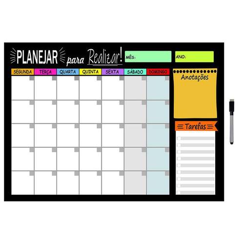Mural Planejador de Metal Mensal 40x60cm + Caneta Nossos planejadores são uma ótima opção para você organizar suas tarefas, compromissos, dietas, planos de estudo, definir suas metas, objetivos, entre outros. É feito com material resistente e uma interface lisa possibilitando que você possa apagar e reescrever quantas vezes desejar. utilizar sempre caneta apropriada para quadro branco . Contém: 1 Planejador 40x60cm 1 Caneta para quadro branco com apagador e imã na tampa