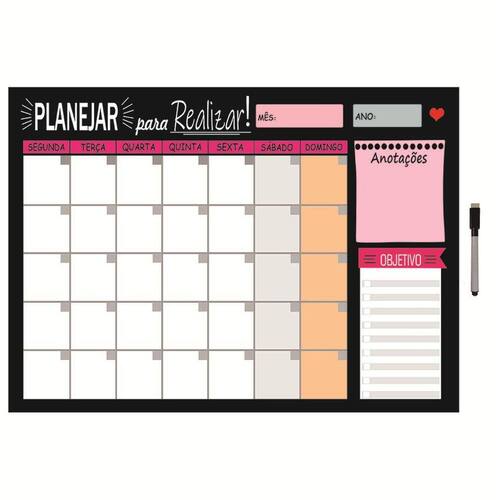 Mural Planejador de Metal Mensal 40x60cm + Caneta Nossos planejadores são uma ótima opção para você organizar suas tarefas, compromissos, dietas, planos de estudo, definir suas metas, objetivos, entre outros. É feito com material resistente e uma interface lisa possibilitando que você possa apagar e reescrever quantas vezes desejar. utilizar sempre caneta apropriada para quadro branco . Contém: 1 Planejador 40x60cm 1 Caneta para quadro branco com apagador e imã na tampa